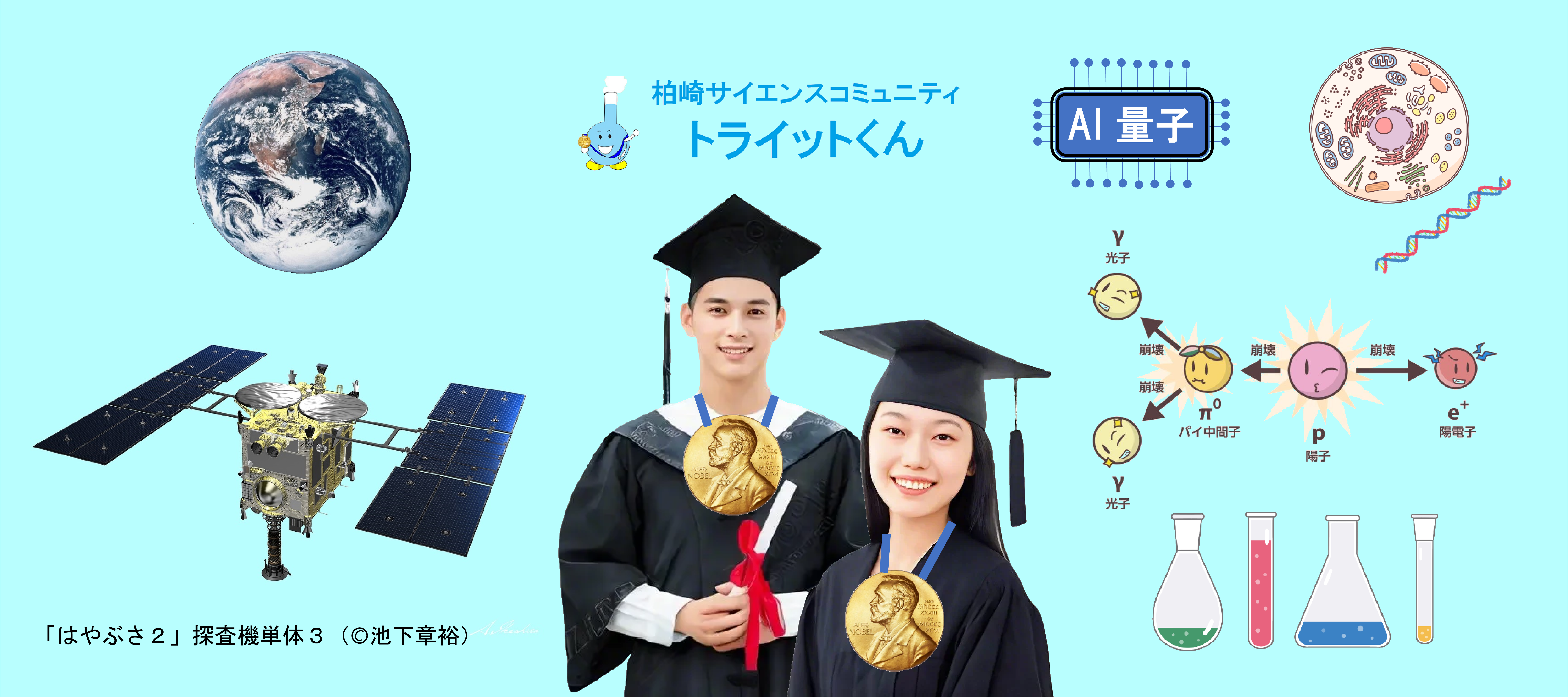 柏崎サイエンスコミュニティ「トライットくん」は、スーパーサイエンスハイスクール(SSH)指定校の「新潟県立柏崎高等学校」をハブとして、柏崎・刈羽地域の青少年の「科学教育」および「探究活動」の振興を目的とするコミュニティサイトです。地域の皆様が持つ「科学や技術の話題」および「探究学習や自由研究の題材」に関して、多くの人と情報が集まり、「交流」や「化学反応」を引き起こす「知的好奇心あふれるコミュニティサイト」を目指しています。本サイトには「柏崎・刈羽から未来のノーベル賞受賞者(科学技術イノベーター)輩出」の夢が込められています。子供達をはじめとする本サイトの訪問者に「面白そう」、「やってみたい」などの「ワクワクの種」をご提供いただける方はぜひ「会員登録」をお願いします。